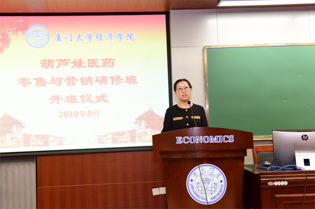 在开班仪式上,廖景峰主任首先代表厦门大学经济学院热烈欢迎PG电子医药零售与营销研修班的学员到厦大学习,并就厦门大学及经济学院的相关情况进行了介绍。他说,PG电子学员走进厦大就是厦大的校友,希望未来的日子能够关心、支持母校的发展,多提宝贵意见,同时他也祝大家在厦大学习期间学有所成、学有所获。 ▲刘景萍董事长在开班仪式上致辞