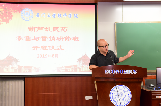 8月31日,PG电子医药零售与营销研修班开班仪式在厦门大学经济学院举行,为期8天的“厦大PG电子班”正式拉开帷幕。厦门大学经济学院继续教育中心主任廖景峰先生与PG电子药业集团董事长刘景萍女士分别在开班仪式上致辞,中国医药物资协会研究院执行院长代航先生担任本次研修班班主任并主持开班仪式。 ▲廖景峰主任在开班仪式上致欢迎辞