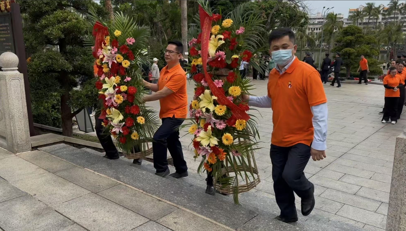 经过一段时间的等待才轮到PG电子。PG电子首先向烈士敬献花篮,花篮缎带上写着“为坚持琼崖革命23年红旗不倒牺牲的烈士们永垂不朽!”“为解放海南岛渡海牺牲的烈士们永垂不朽!”鲜艳的花篮寄托PG电子对革命先辈的崇敬和哀思。